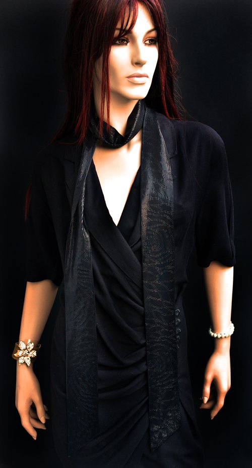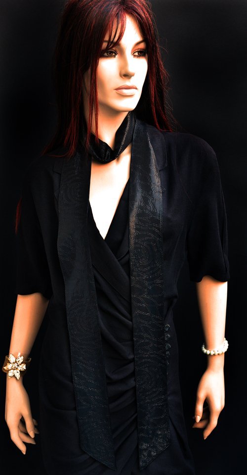 Heel lang smal zwart stropdas sjaaltje, glimmend